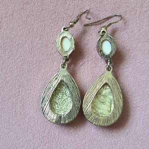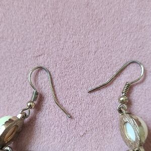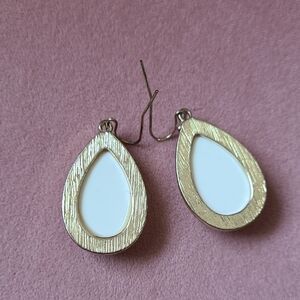 This exquisite set of earrings features elegant creamy teardrop designs and sparkling crystal accents. Silver and Gold bases. Perfect for adding a touch of sophistication to any outfit.