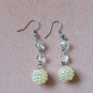 Silver base with clear beads crystals with an iridescent shimmery textured ball bottom