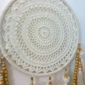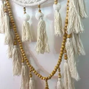 This tapestry is adorned with elegant tassels and beads, adding a touch of bohemian charm to any space. Perfect for creating a warm and inviting atmosphere in your home. Excellent condition