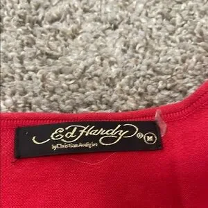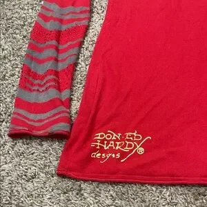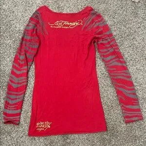 Ed Hardy by Christian Audigier tattoo art Red and Gray Long Sleeve Top