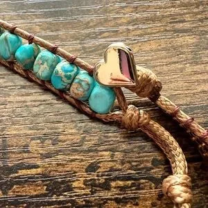 Turquoise is a great stone to reduce anxiety, tensions, stress and anger, it is gentle, soothing and calms the energy around you.