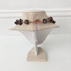 NWT Genuine Murano Glass & Copper Beads Beaded Necklace Purple