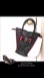 Betsey Johnson Roomy Quilted Vegan Leather Handbag / Purse. Black & Pink Rosette Satin Lining.