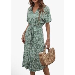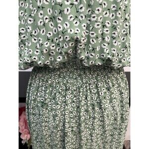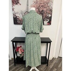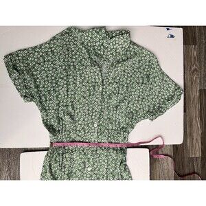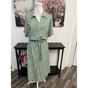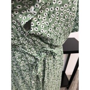 Shibever Midi Shift Dress Women Size L Green Floral Short Sleeve Cottagecore