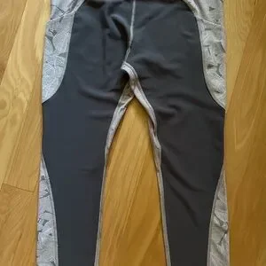 Athleta leggings 25” length with dual color to pop the great and white print. Side pockets. Right side pocket has a zipper area.