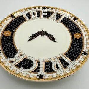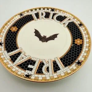 This haunted take on Anthro’s bestselling Bistro Tile Collection is everything a spooky season Francophile dreams of. Think Paris sidewalk café vibes, midnight hues, Halloween creatures, and a whisper of 24k gold—all packed into this espresso cup and saucer duo.