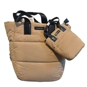 New with tags! Stay stylish and organized with this Max Studio quilted tote bag set in a neutral tan with black trim. The puffer-style design is lightweight and trendy, perfect for everyday wear, travel, or work. Includes a matching mini tote pouch and an adjustable crossbody strap for extra versatility.