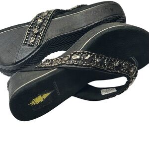 Elegant Black Embellished Platform Wedge Thong Sandals Comfortable Size 9