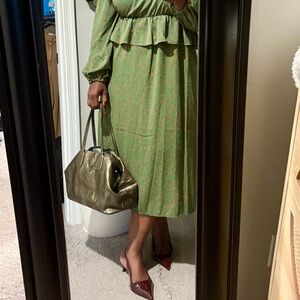 Reposhing this size 18 as I found and purchased a size 16. ELOQUII elements olive peplum dress. Pair it with the green authentic Coach Kisslock purse I’m selling. $65 when you buy both!! Just the dress $20