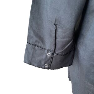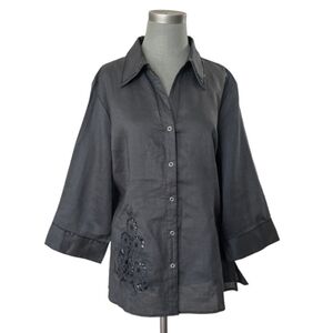 Women’s Shirt LINO USA Black Blouse 3/4 Sleeve Shirt Beads Embroidered Linen Top