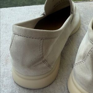 Size 39.5. Comes with dust bags. Neutral suede. Worn. Color is grayish light beige
