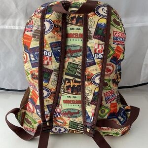 Vibrant backpack with diverse sticker graphics. Features Hard Rock Cafe logo. Perfect for travel and everyday use.