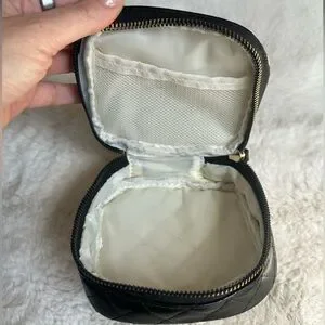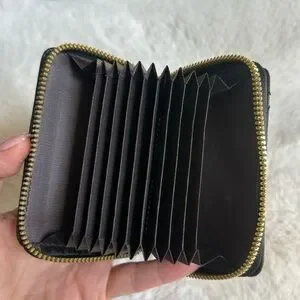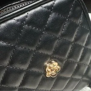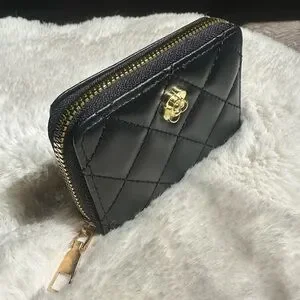 This elegant black quilted bag set is perfect for any occasion. Featuring a stylish design with gold accents, it adds a touch of sophistication to your outfit. These fashion pieces resemble a top designer, which really makes me think they are so classy. The little accordion holds credit cards, business cards, and anything else you can think of putting in there. The other case has a wristlet, and holds the wallet that it comes with, and/or anything else you see fit. It also has a little netted slot as you can see for safer keeping. I bought these for myself about a year ago, and I never used them, so they are brand new. I’m open to selling them separately, but I’m pricing them at such a good deal together.