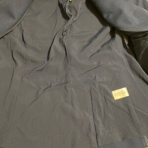 NWT- Women’s double breasted suit jacket with mirrored silver buttons and white contrast threading. Interior button close. Fully lined. Pockets and back flap still stitch sealed.