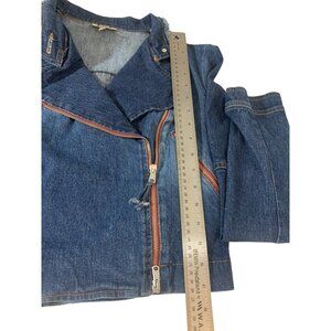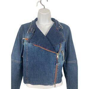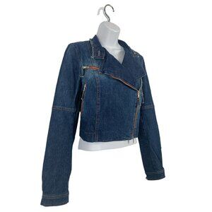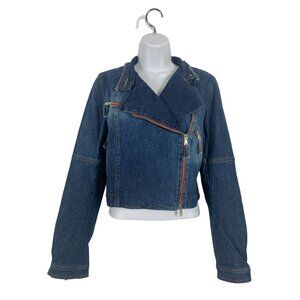 Cropped Moto Denim Jacket With Asymmetrical Zipper For Women Size 6 Small