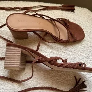 Chic brown suede sandals with braided straps. Perfect for stylish outings.