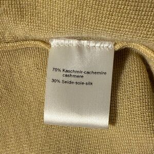 Gold-toned sleeveless cashmere/silk-blend top with a V-neck. Possible wear on front of top in chest area