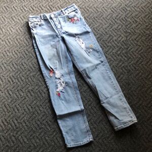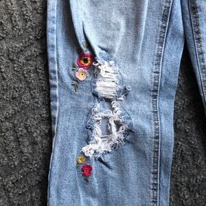 Light blue jeans with vibrant embroidered details. Fun and stylish for kids.
