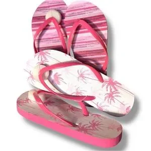 Step into summer with these vibrant **AJ Southern Charm** flip flops! Featuring a fun tropical palm tree print on one pair and stylish pink stripes on the other, these sandals are perfect for beach days, pool parties, or casual outings. Designed with comfort in mind, the soft foam soles and flexible pink straps provide all-day wearability.