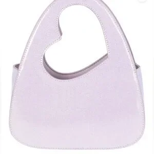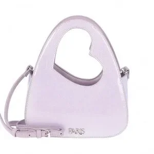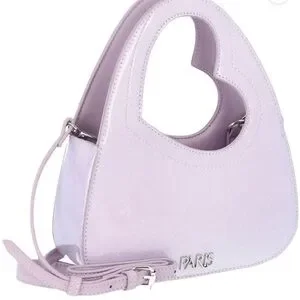 Elegant lilac crossbody with heart-shaped handle. Adds charm to any look.
