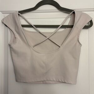 Cute beige crop top with a criss cross back for a more elegant look. Only worn once, great material!