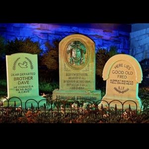 LIGHTED HALLOWEEN DECOR: 24-in H x 18.5-in W x 5.3-in D outdoor tombstone from Disney's Haunted Mansion