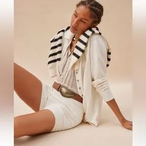 Free People Zuma Sweater Set Button Down Shirt Knit shorts