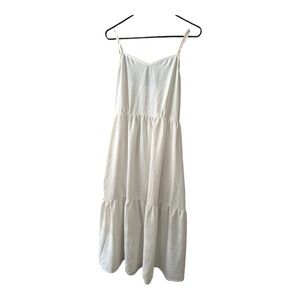 Light, flowy, and feminine—this ivory-white tiered midi dress is your go-to for warm days and breezy nights. Features adjustable spaghetti straps, a V neckline, and a soft gathered waist for a flattering silhouette.