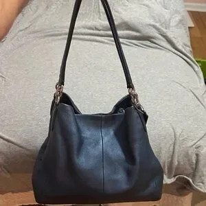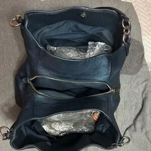 Blue pebbled Phoebe Coach Bag with 3 sections including inner pockets.