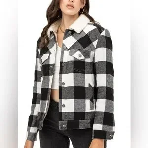Love Tree Faux Fur Sherpa Lined Plaid Shacket / Jacket