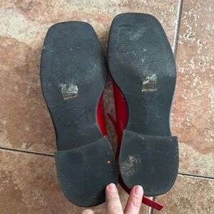 Add a pop of color to your outfit with these chic red flats. Featuring a stylish ankle strap, they are perfect for any occasion.
