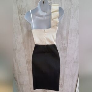 💚5/$25 Jodi Kristopher Ruffled Cream & Black Cocktail Pencil Dress Size 8/9