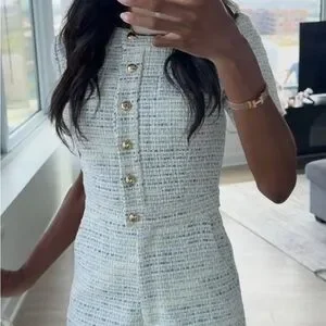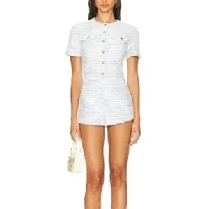 Amanda Uprichard Blue and White Tweed Jumpsuit