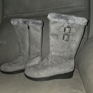 Brand New Still In Bag! Stay cozy and stylish with these gray faux fur lined women's boots. Perfect for chilly days. ***SIZE 38***