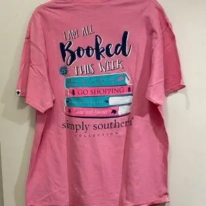 Simply Southern pink t-shirt with logo on front. Casual and comfortable style.