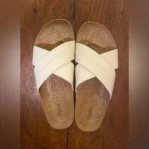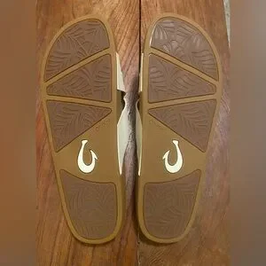New, never worn, in perfect condition, see photos. Have owned a couple of months, never used. About the OluKai Kīpe‘a ‘Olu slide sandal: Embellished premium leather straps with hand-stitched details and laser-etched tropical flora on the footbed. All-day comfort footbed and sustained support. Enhanced grip with OluKai special Wet Grip Rubber sole.