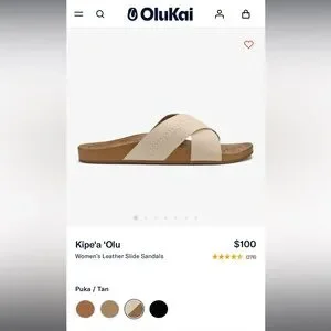OluKai Kīpe‘a ‘Olu Women’s Leather Slide Sandals Puka Tan Size 8