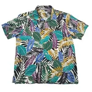 Tommy Bahama Hawaiian Shirt Mens L Floral Print Silk Coolmax Short Sleeve Button