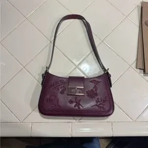 Chic shoulder bag with floral design. Rich burgundy color. Perfect for stylish outings. Completely unused perfect condition