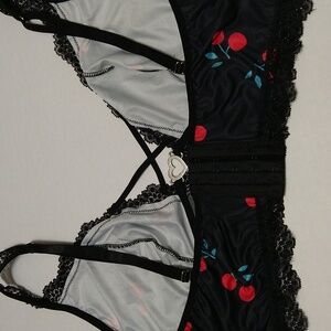 Black Lace Trim Sexy Cherry Print Bralette Size 2XL