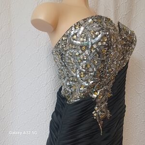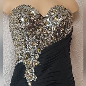 Kiss Kiss Formal Black and Silver Strapless Dress Women Size 10