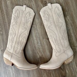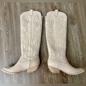 ✨New JEFFREY CAMPBELL Calvera 2k Western Tall Boots Nubuck Beige Womens 8M