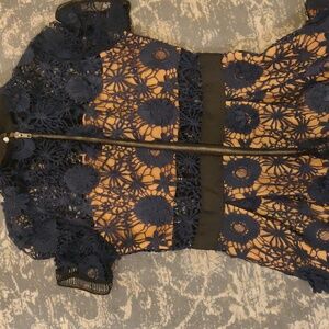 Few Moda NY hollow transparent cotton Elegant Navy Lace Black Trim Midi Dress