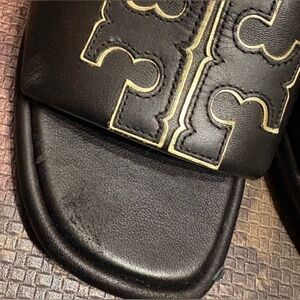 Tory Burch Double T Sport Slides Black Slides with Gold Emblem