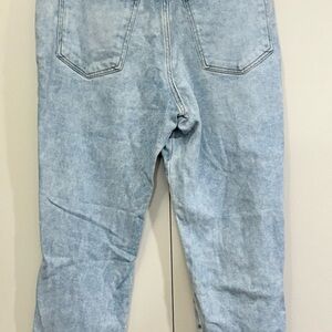 Trendy light blue jeans with a relaxed fit. Features stylish distressing for a casual vibe. Perfect for everyday wear.
