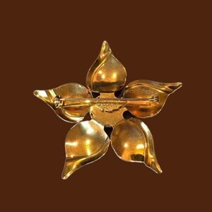Beautiful flower in shades of orange enamel brooch by Sandor Co.
