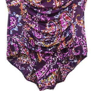 Miraclesuit One Piece size 12/14 Plum Paisley Ruched Tummy control Swimsuit
