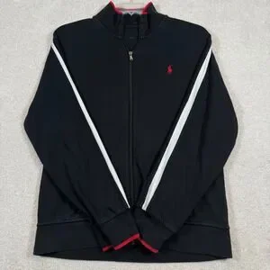 Polo Ralph Lauren Mens Full Zip Track Jacket Black White Red Accents Size Large