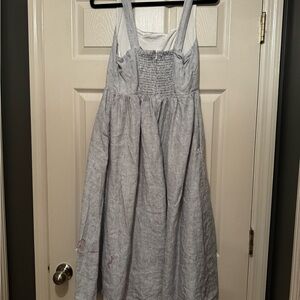 Quince European linen fit, and flare midi dress size medium in the color blue pinstripe. Sold out on website. Excellent condition worn once for a photo shoot.