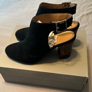 Vionic Black Suede Heels with Tortoise Shell Detail